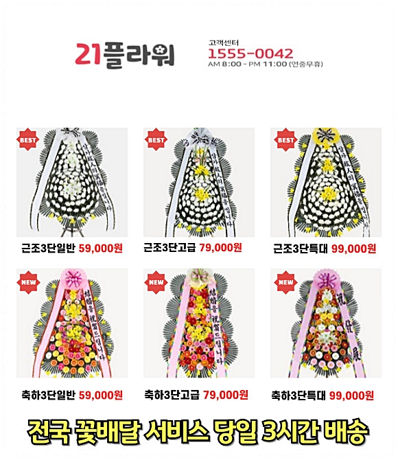 서울, 용인, 인천, 대전, 수원 등 전국 어디라도 축하화환을 주문할 수 있으며 전국 3시간 배송입니다