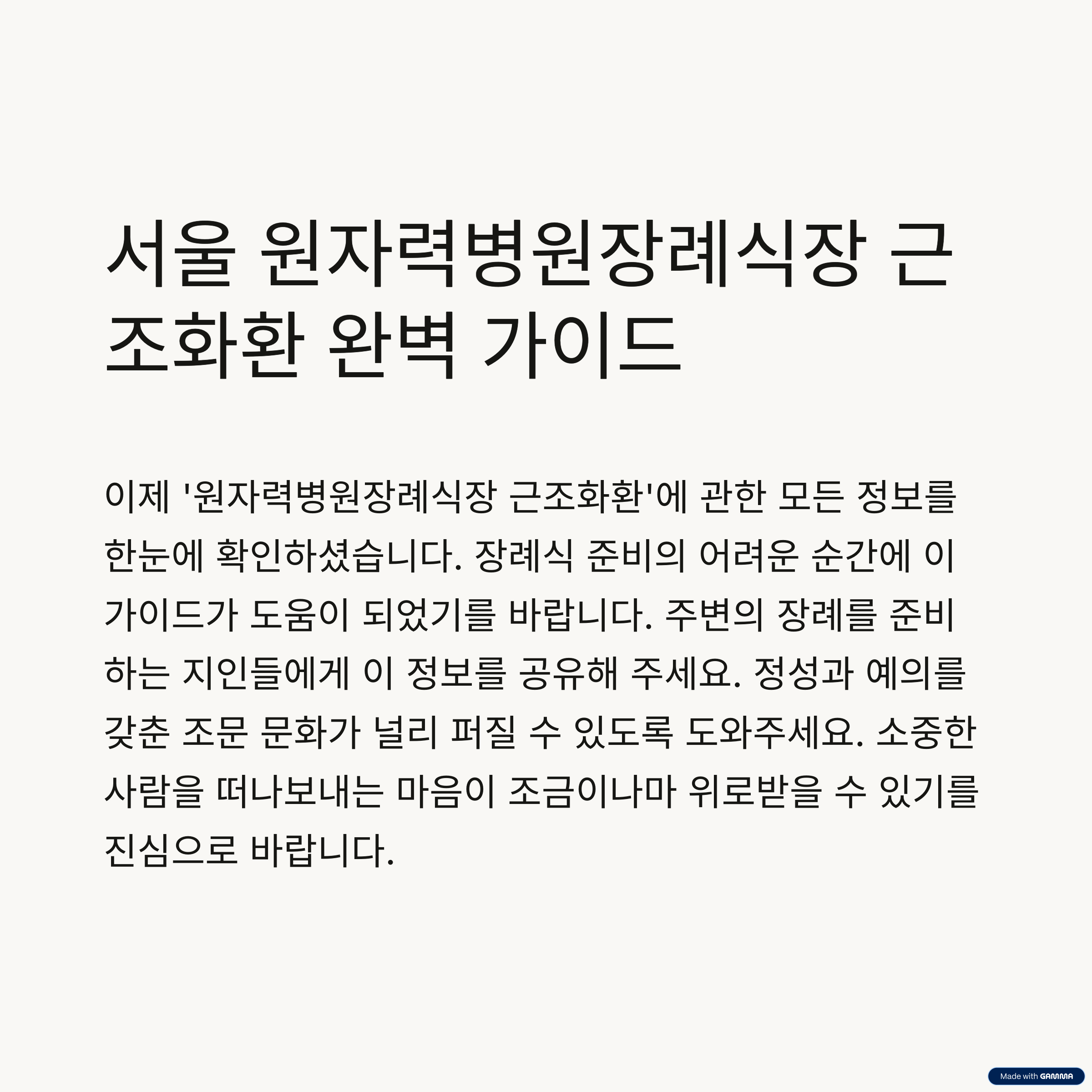 서울 노원구 공릉동에 위치한 서울 원자력병원 장례식장은 서울 동북부 지역을 대표하는 장례시설로, 연중 많은 조문객과 유족이 방문하는 곳입니다. 고인의 마지막 길을 정중히 배웅하고 유족에게 깊은 애도를 전하기 위해 근조화환은 필수적인 예의로 자리 잡고 있습니다. 이번 글에서는 서울 원자력병원 장례식장에 적합한 근조화환 주문 방법과 주의할 점을 상세히 소개합니다.