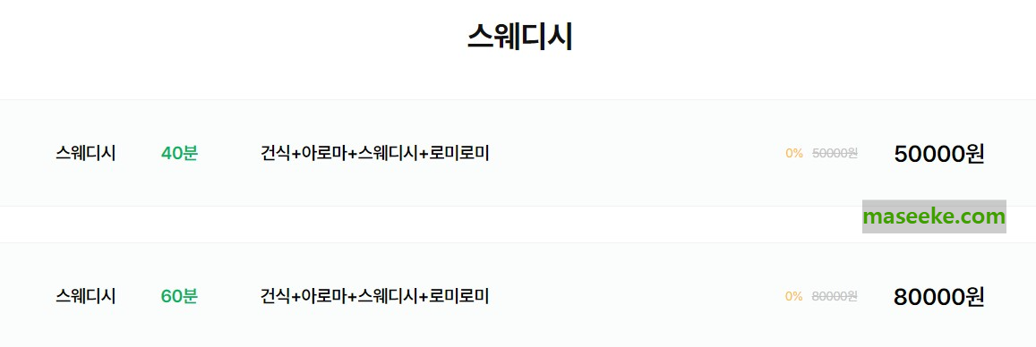 스웨디시코스 40분 건식+아로마+스웨디시+로미로미 50000원