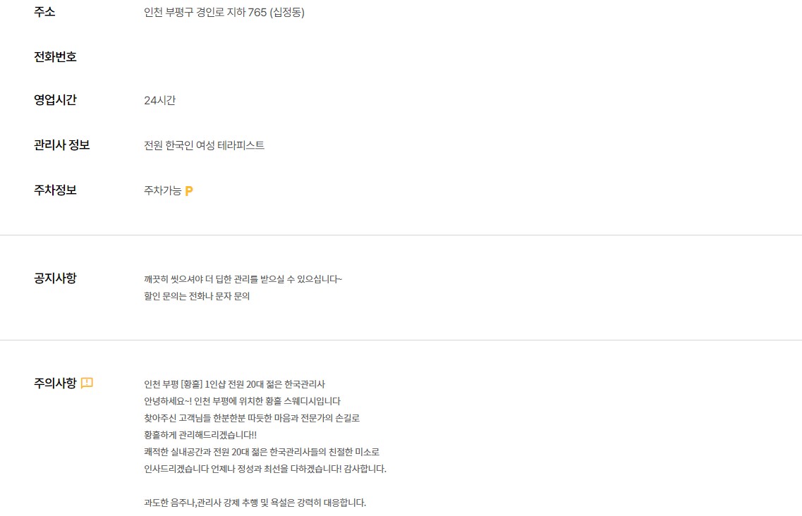 인천 1인샵(황홀스웨디시마사지)부평역 1인샵