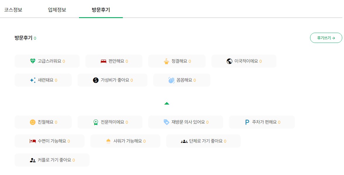 친절해요, 깨끗해요,가성비좋아요,재방문의사있어요,주차편해요,샤워가능해요