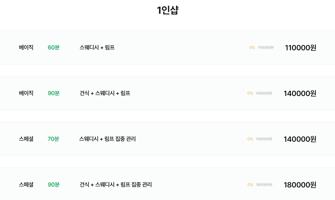 1인샵 베이직 코스 60분 스웨디시+림프 110000원