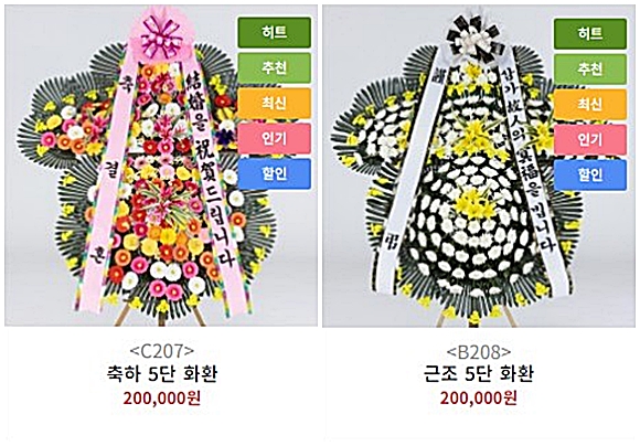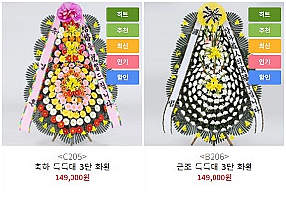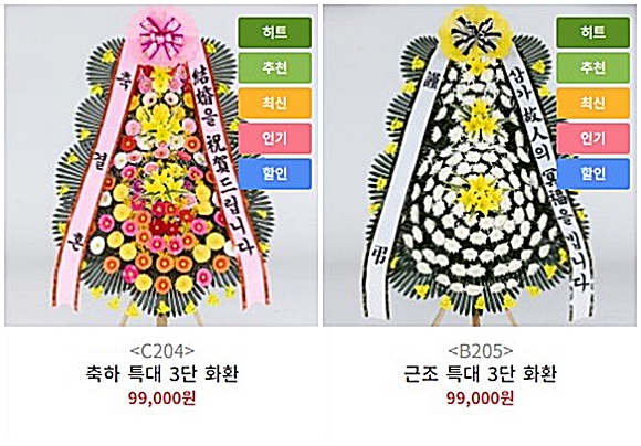 특별히 사용하는 화환이나 꽃꽃이를 말한다