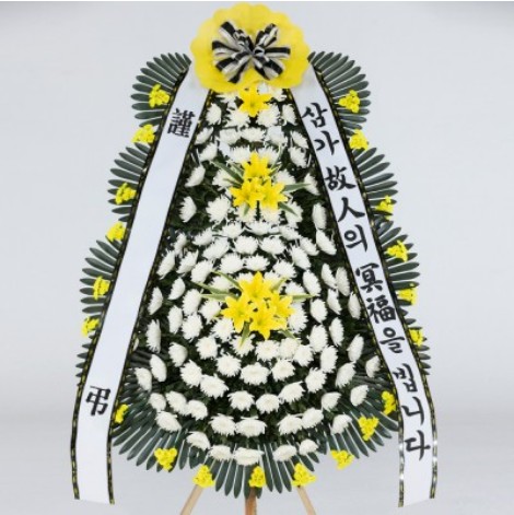 장례식장, 부의, 추모, 영결식장에 조의를 표하는 상품입니다. 3단 기본 화환입니다. 가장 많이 주문되는 모델입니다. 저희 화환은 모두 정품으로 제작합니다